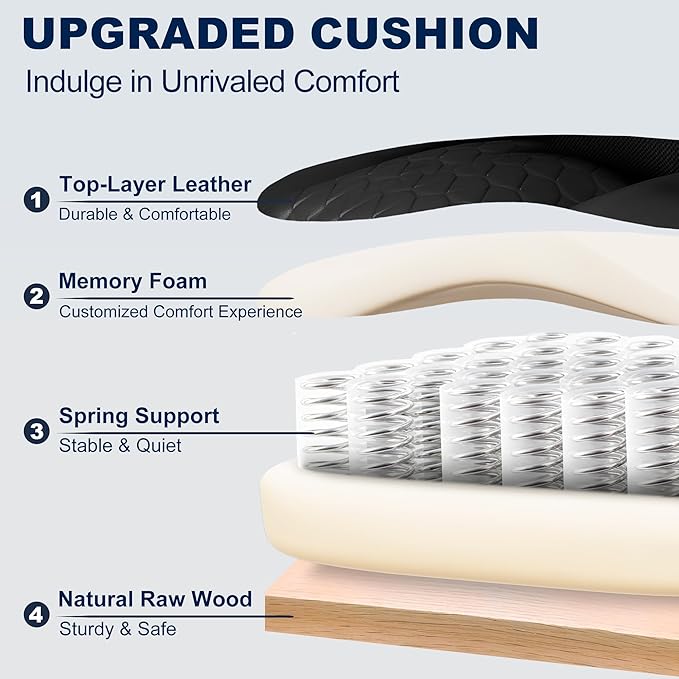 - Cloud-Like Seating Comfort with Skin-Friendly Upholstery: This Office Desk chair’s hybrid thickened cushion combines high-density sponge and durable coil springs for a perfect mix of softness and stability. Its premium synthetic leather upholstery is smooth, skin-friendly, and easy to wipe clean, ensuring a cozy and hygienic seating experience for daily use.