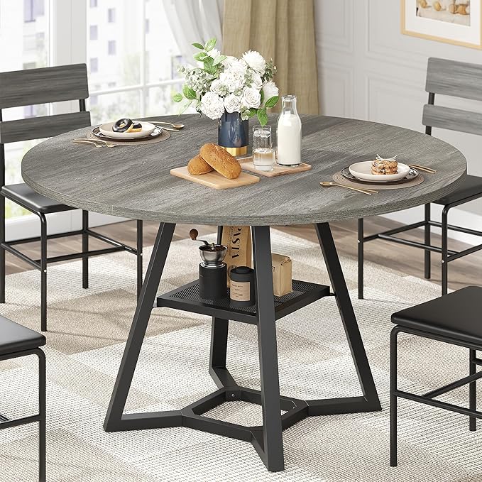 - LARGER STORAGE SPACE: The grey round dining table maximizes the usable area of the dining table, which can comfortably seats 4 to 6 people, perfect for dinner, breakfast, afternoon tea. A thickened designed storage shelf is for organizing tableware and kitchen essentials, keeping them easily within reach. Ideal for family meals and friends gatherings.