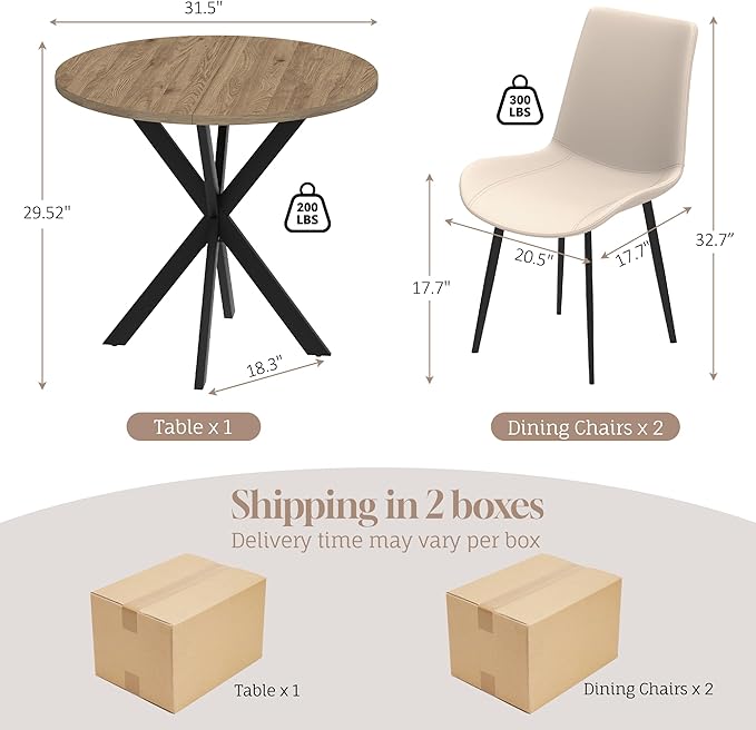 - Versatile for Any Room: This dining table chairs set features a round table crafted from thick wood material with a grain finish, complemented by 2 upholstered dining chairs. Used for dining and kitchen areas, this set can also serve as a coffee table set, breakfast nook, or conference guest table chairs, providing ample space for cutlery, decorative items, and more.