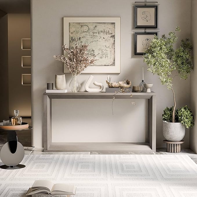 60" Rectangular Solid Wood Veneer Console Table for Entryway, Wide Sofa Table, Behind Couch Table with Ample Storage for Entryway & Living Room, Grey