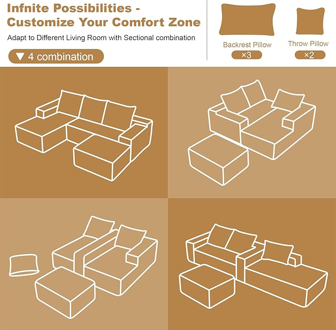 - Plush Corduroy Fabric:Feel the difference with our plush corduroy fabric, as soft as a hug from your favorite blanket. The rich texture and subtle sheen of this cloud couch elevate your living space, offering a tactile experience that pampers you. Cozy up and embrace the warmth and softness all year long with our modular sectional sofa.