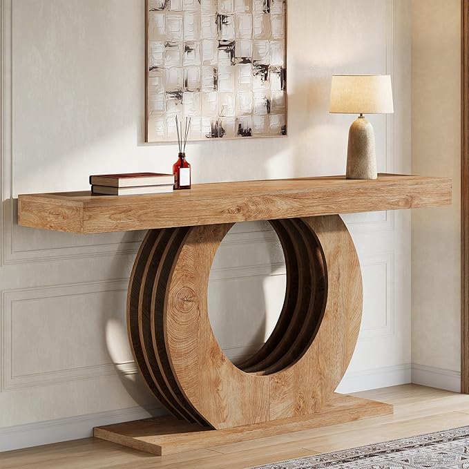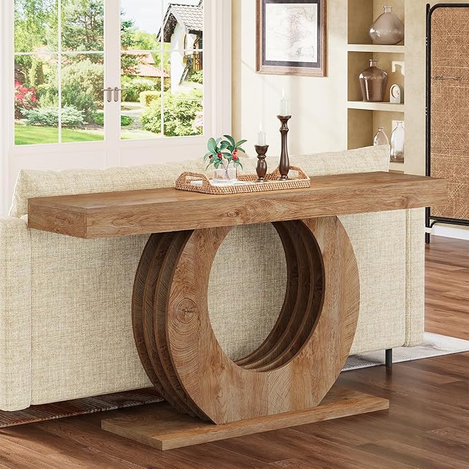 - Function & Style Combined: This 63" entryway table seamlessly blends rustic wood grain tabletop and black round base. This versatile table is suitable for decor, storage, or statement displays. Dimensional depth elevates farmhouse or modern spaces