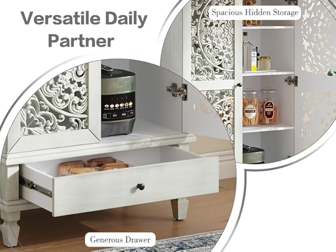 - 【VERSATILE & MULTIFUNCTIONAL】Perfect for use as an accent cabinet in multiple rooms including the living room, dining room, kitchen, or hallway. It's not just a decorative statement piece but also a practical storage solution with a drawer for organizing daily essentials.