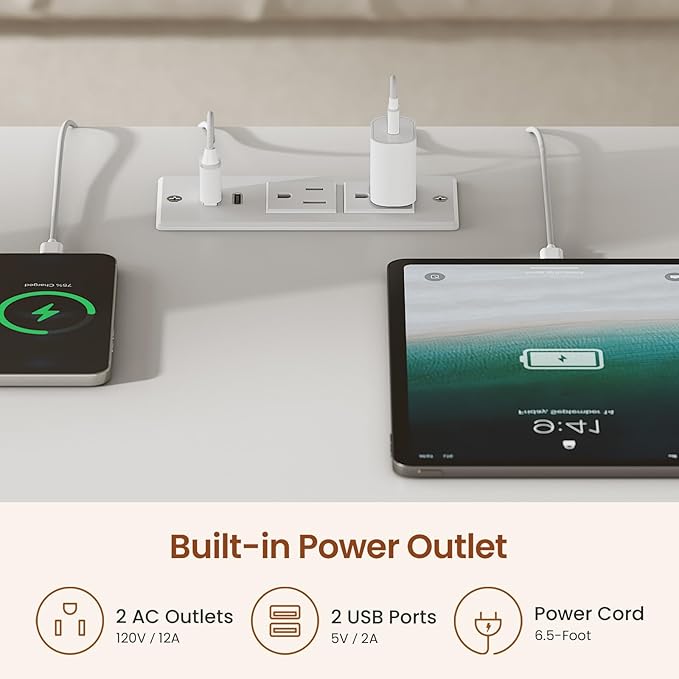 - 【Built-in Power Outlet】The built-in charging station includes two power outlets, one USB port, and one Type-C port, capable of powering up to four devices simultaneously. Ideal for charging phones, tablets, laptops, and other devices. This height-adjustable coffee table with drawers creates an efficient and tidy work, study, or gaming space.
