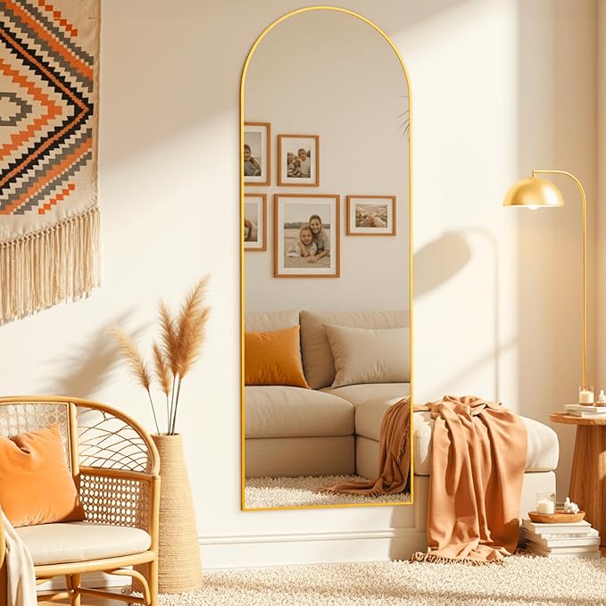 Arched Full Length Mirror, 64"×21" Large Mirror, Mirrors Full Length for Home Wall Decor, Floor Length Mirrors with Metal Stand for Room Bedroom Décor, Gold