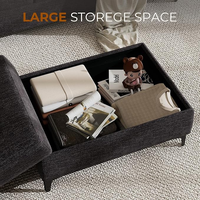 35" Large Storage Ottoman for Living Room, 7.8" Deep Seat Rectangular Ottoman Foot Rest for Couch, Chenille Storage Footstool Load 350 lb (Dark Dray)