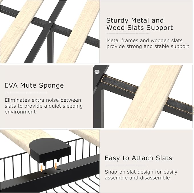 - 【Easy to Assemble】All parts come neatly packed in one box with clear labels, and the instructions are simple to follow. The wood slats feature a bolt-free, quick-lock assembly system, saving you both time and effort.