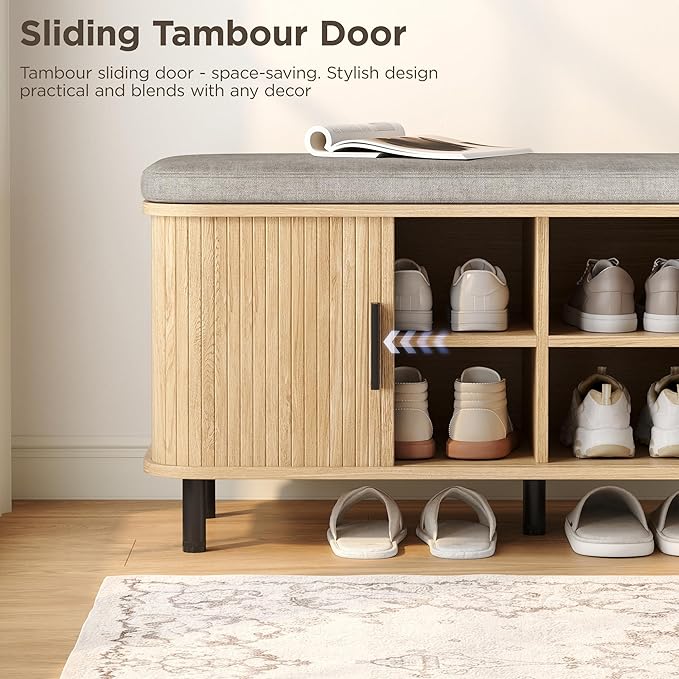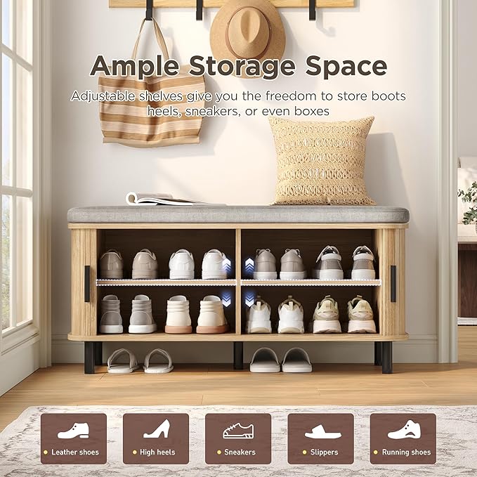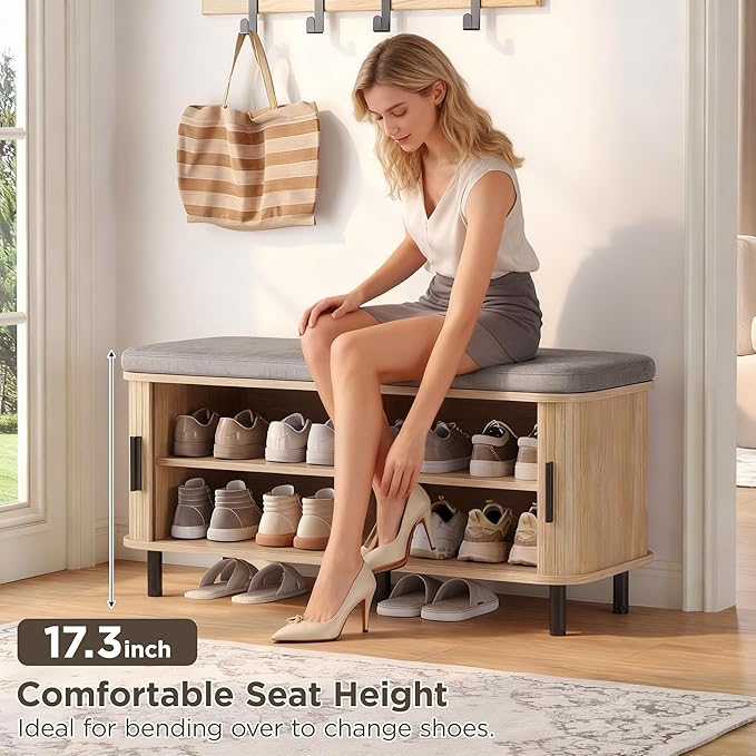- [Multifunctional Entryway Bench]: This shoe rack combines a shoe bench, shoe cabinet and storage cabinet, one product meets all your needs! Take a seat and change your shoes in total comfort. As a shoe cabinet or storage cabinet, store shoes beautifully and save space. The unified style makes it a warm and inviting focal point in the foyer, entry, hallway, mudroom, living room, closet or porch