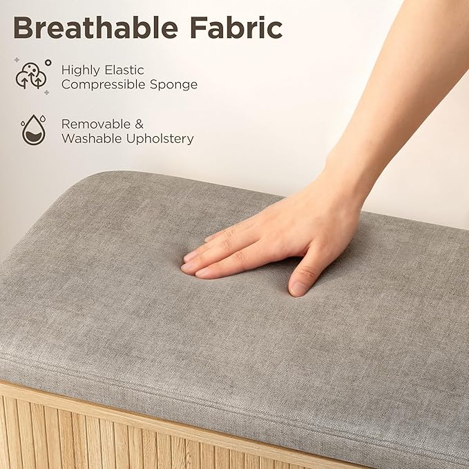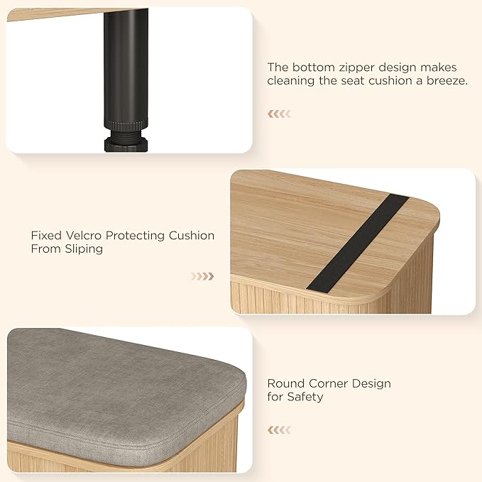 - [Large Storage Bench]: Measuring 39.4"L x 15.7"W x 19.1"H, this versatile storage chest provides ample space behind its hinged lid for organized storage of shoes, accessories, and household items. The 12-inch depth accommodates bulkier objects with ease, while adjustable interior boards allow full customization of the storage layout. Keep your entryway tidy and belongings discreetly stored in one sleek, space-saving piece