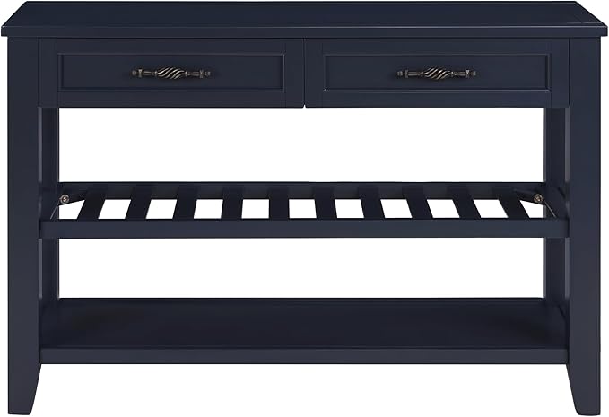 - 【Functional Storage】: Equipped with two spacious drawers and two bottom shelves, this console table provides ample storage space for organizing your essentials, keeping your living area neat and clutter-free.
