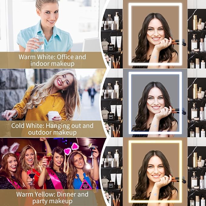 - Adjustable Vanity Lighting: Features a vanity mirror with 3 lighting modes, providing perfect illumination for makeup application and grooming in any lighting condition.