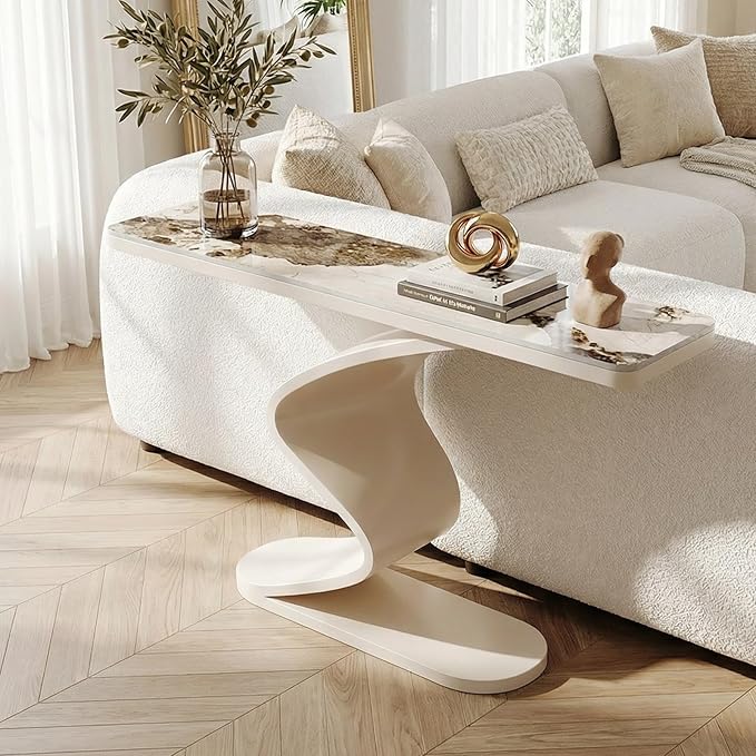 - Sculptural S-shaped Base - This modern console table features a stunning continuous curved base that flows gracefully from top to floor in an elegant S-shape. The smooth marble finish and contemporary sculptural form transform functional furniture into a statement piece of art, instantly elevating your entryway, living room, or hallway with sophisticated modern design that will admire.