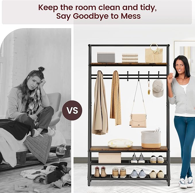 - 【Versatile & Convenient Entryway Solution】 More than just a coat rack, this unit provides a comfortable bench to sit on while putting on or taking off shoes. It’s the perfect organizational hub near your front door, in the mudroom, or even in a walk-in closet, helping you start and end your day in an orderly fashion.