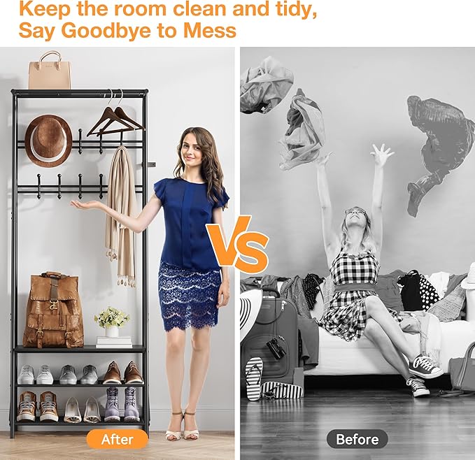 - 【Versatile & Convenient Entryway Solution】 More than just a coat rack, this unit provides a comfortable bench to sit on while putting on or taking off shoes. It’s the perfect organizational hub near your front door, in the mudroom, or even in a walk-in closet, helping you start and end your day in an orderly fashion.