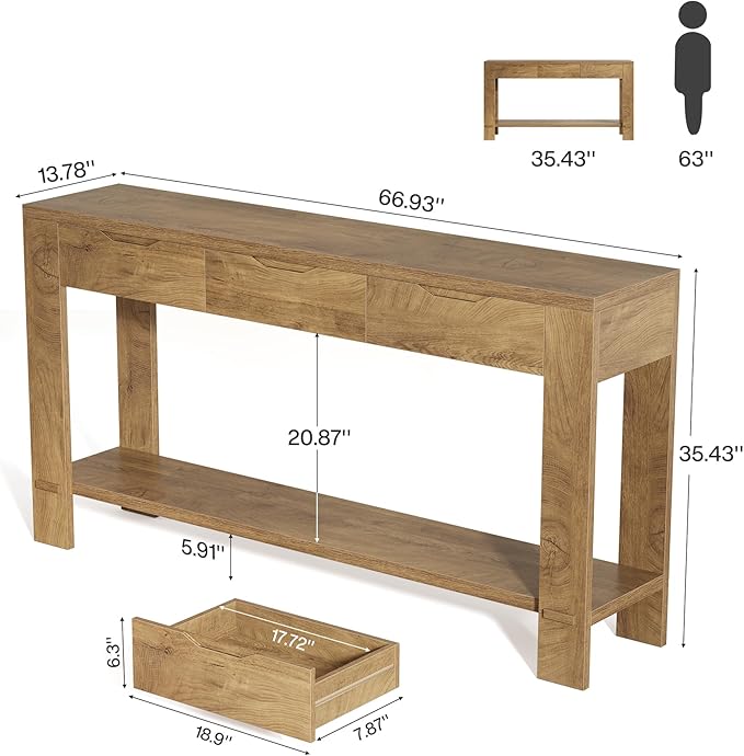 - ššš¬š² šš¬š¬šš¦šš„š² & šš®š©š©šØš«š: šš¢š¦šš§š¬š¢šØš§š¬: 13.78" D x 66.93" W x 35.43" H. This sofa table with drawers includes all necessary tools and clear instructions for quick setup. For any inquiries, our friendly customer service team is always here to help