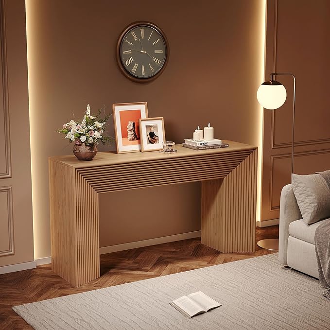55-Inch Wood Entryway Table with Storage, Narrow Long Sofa Table Behind Couch, Fluted Console Table for Entryway, Hallway, Living Room, Accent Table for Decoration and Organization, Natural Wood