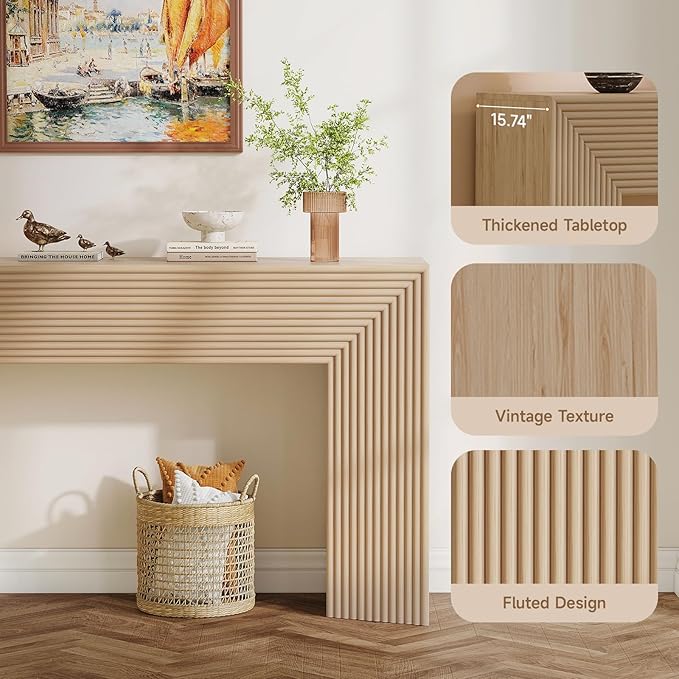 - Elegant Fluted Entryway Table: The grooved, textured panel gives it a stylish and unique look. It easily complements various home décor styles, from Scandinavian to contemporary, creating an artistic decorative piece that elevates the style of any entryway or living space