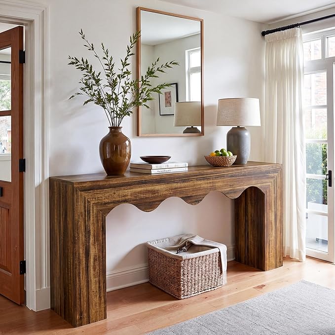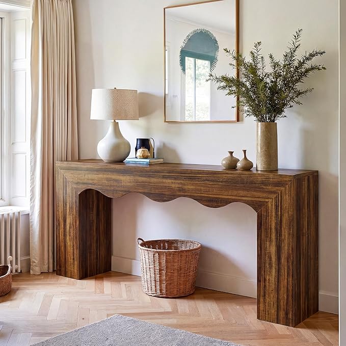 - Unique Wavy Edge Design: This retro console table features a unique wave design. The square base design makes it more solid. The elegant wave design adds a distinctive touch to your life